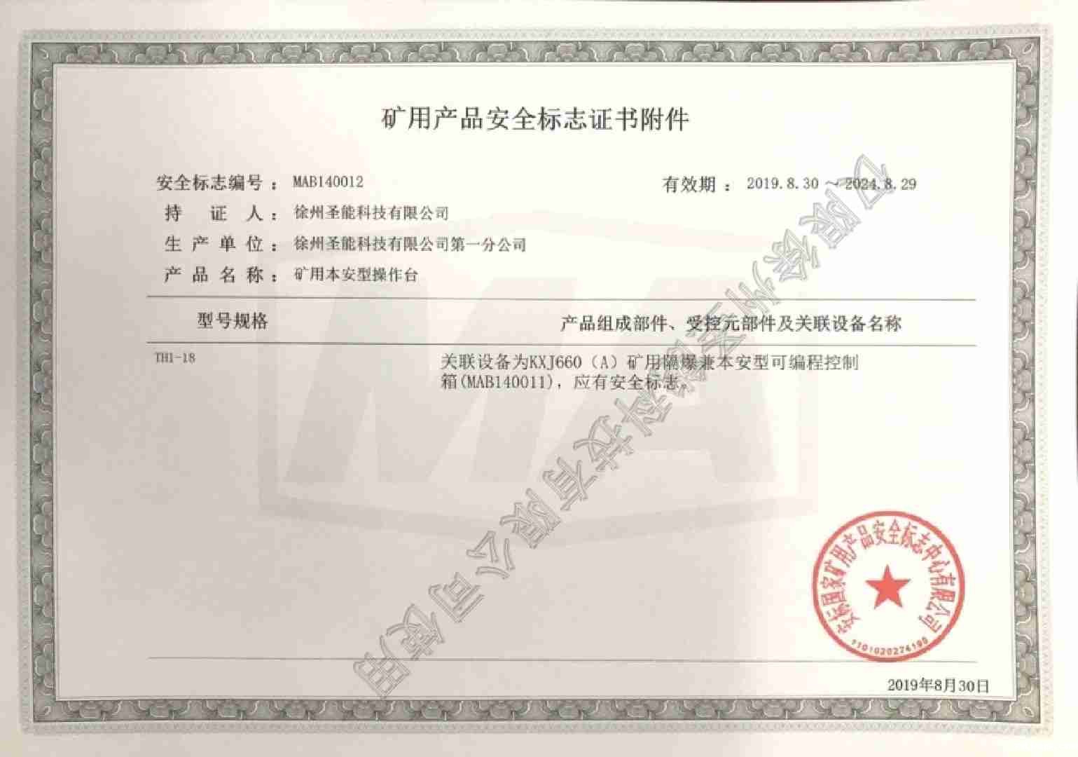 TH1-18矿用本安型操作台煤安证附件