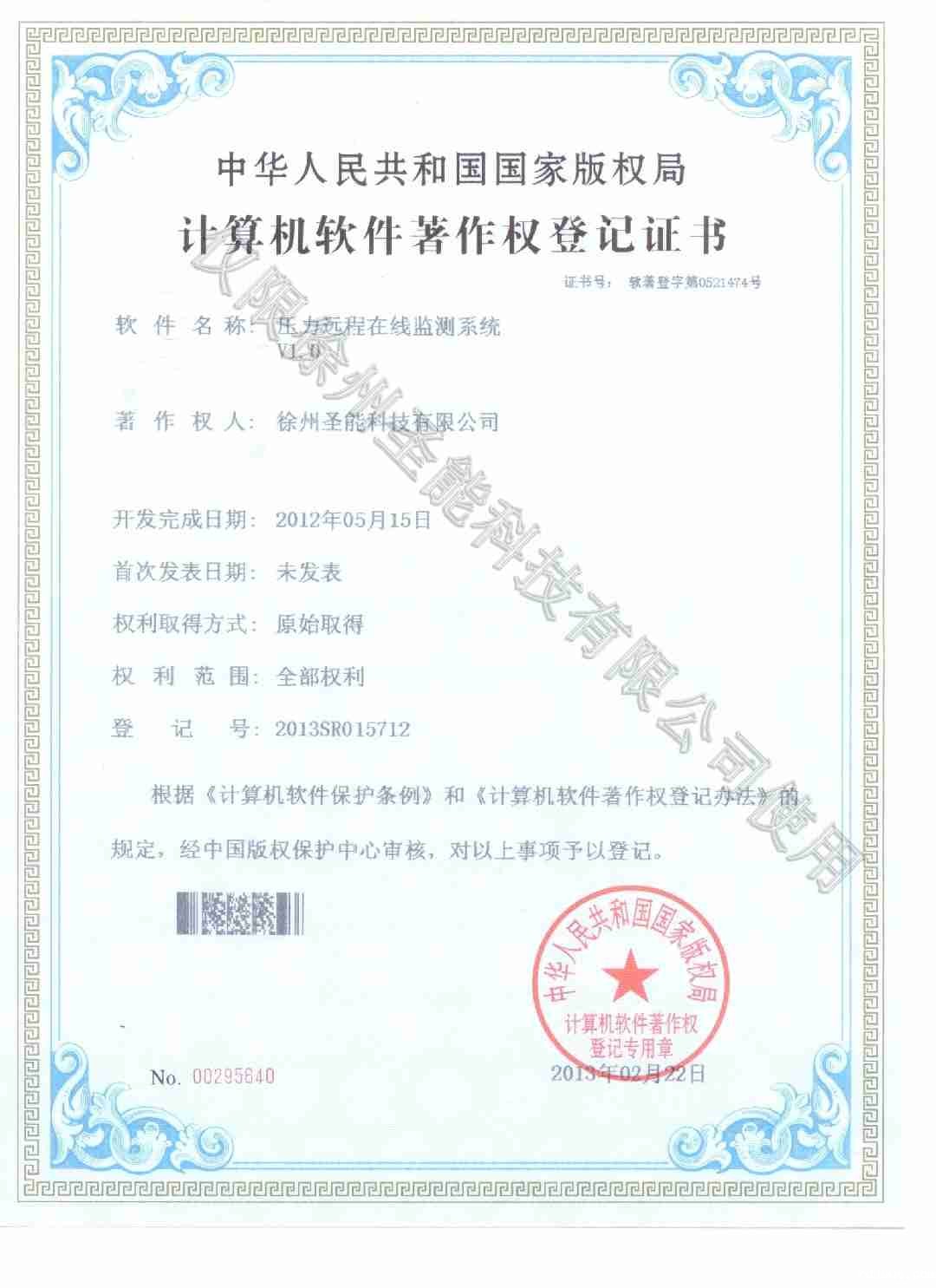 压力远程在线监测系统软件著作权