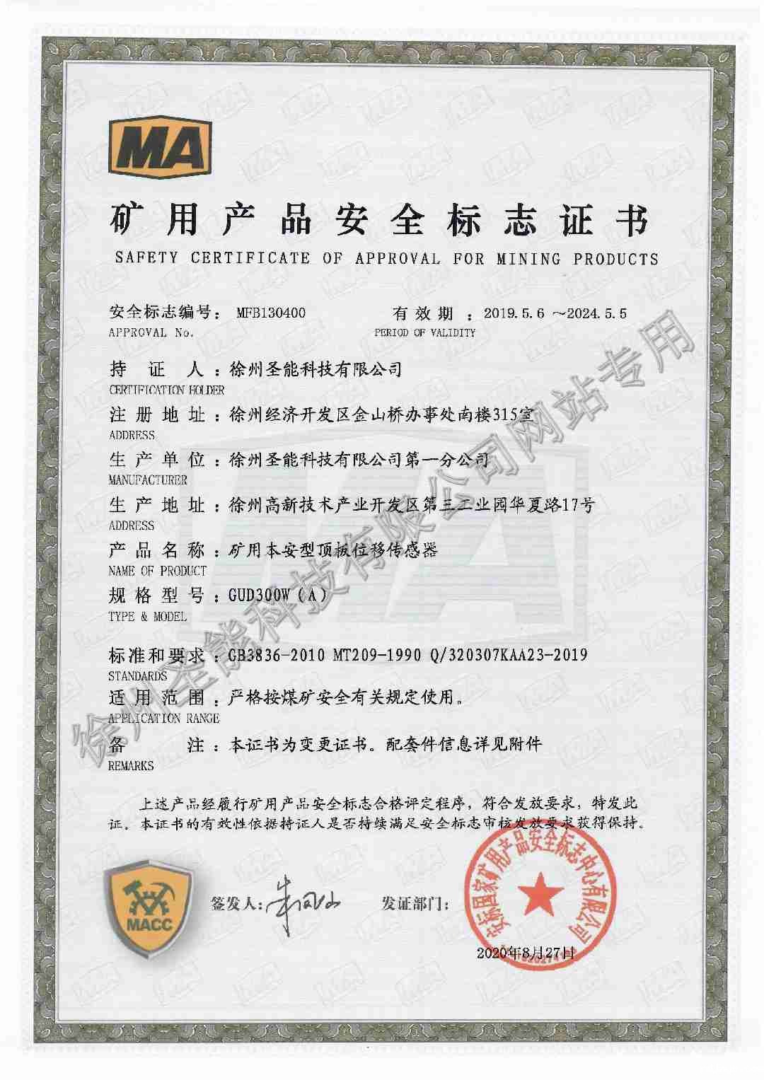 GUD300W(A)矿用本安型顶板位移传感器煤安证