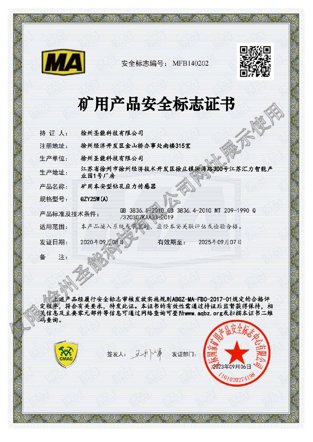 GZY25W(A)矿用本安型钻孔应力传感器煤安证