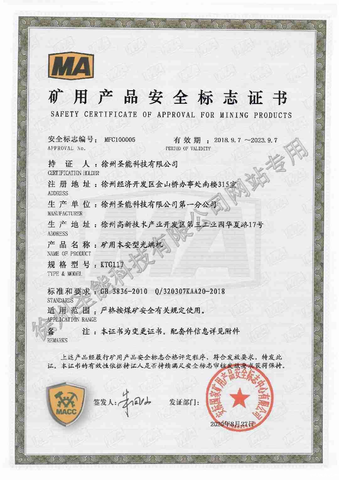 KTG117矿用本安型光端机防爆证