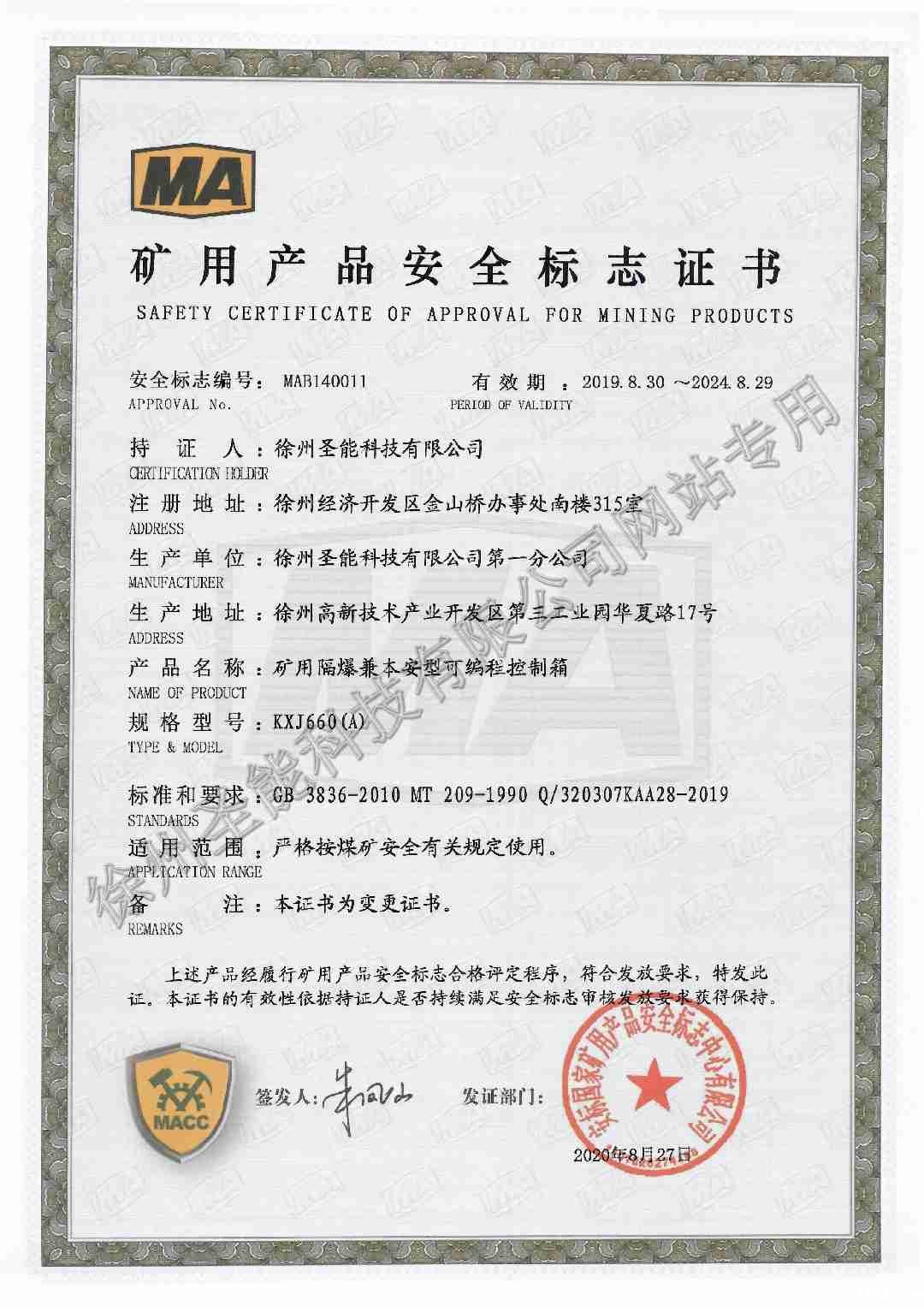 KXJ660(A)矿用隔爆兼本安型可编程控制箱防爆证