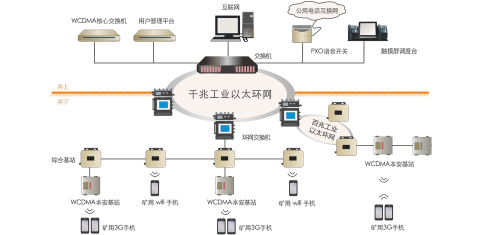 矿用无线通信系统主要由各级交换机、基站和矿用3G手机等部分组成,能够在煤矿实现随时随地沟通,是最适合煤矿使用的调度通讯系统。矿用无线通信系统的无线通信系统基于WCDMA制式,除了可以打电话,还可以提供上下行数据业务。