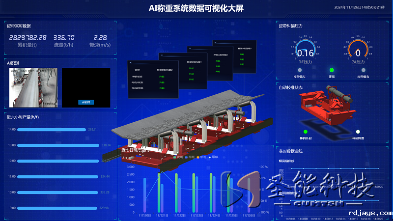 人工智能技术的融入,为高精度电子皮带秤的智能化升级提供了可能。AI技术通过深度学习、机器视觉和大数据分析等手段,能够实时感知、分析和优化皮带秤的工作状态。例如,通过AI摄像机和图像识别技术,系统能够智能识别皮带通过物料和皮带运行的状态,包括物料的流量和分布、皮带偏载等,从而自动调整计量参数、皮带纠偏、自动在线校秤,提高称重的准确性和稳定性。