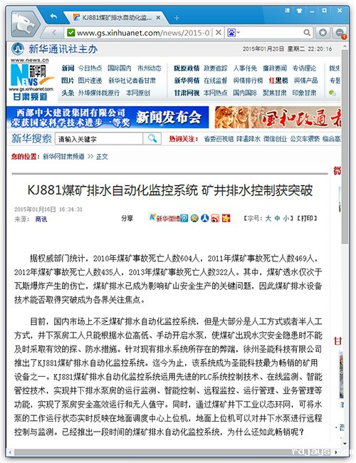 我司“KJ881煤矿排水自动化监控系统”获权威机构认可并广受市场欢迎,《新华网》对此进行了深入报道。