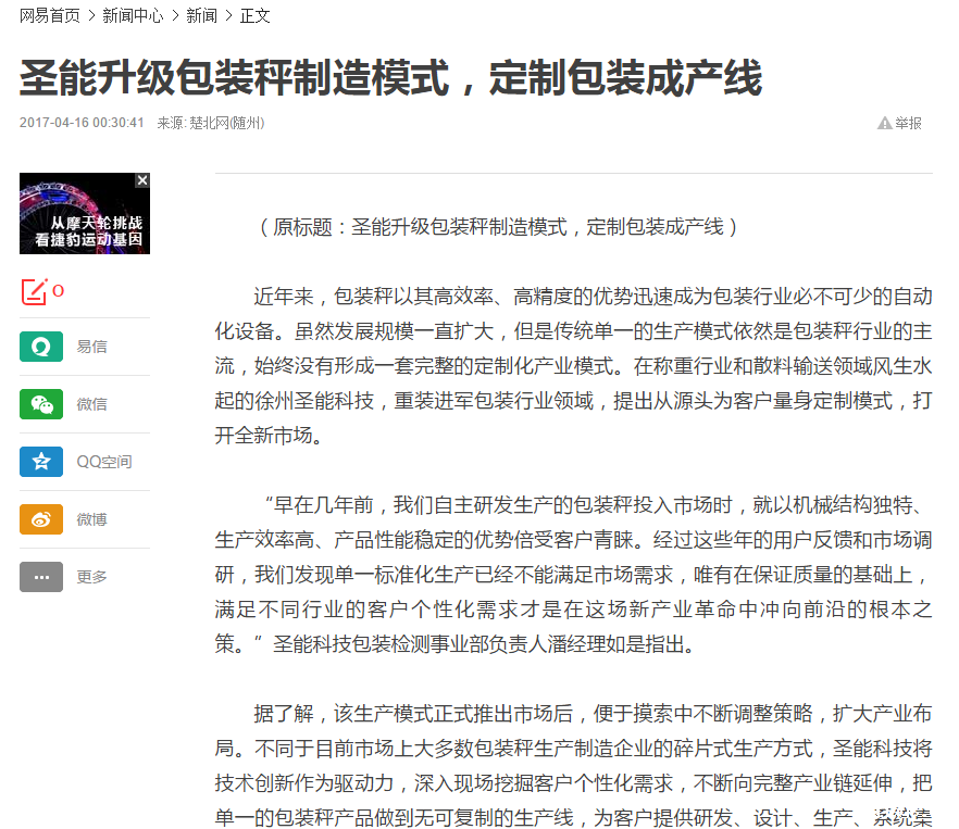 包装秤以其高效率、高精度的优势迅速成为包装行业必不可少的自动化设备。虽然发展规模一直扩大,但是传统单一的生产模式依然是包装秤行业的主流,始终没有形成一套完整的定制化产业模式。在称重行业和散料输送领域风生水起的徐州ky体育中国官方科技,重装进军包装行业领域,提出从源头为客户量身定制模式,打开全新市场。