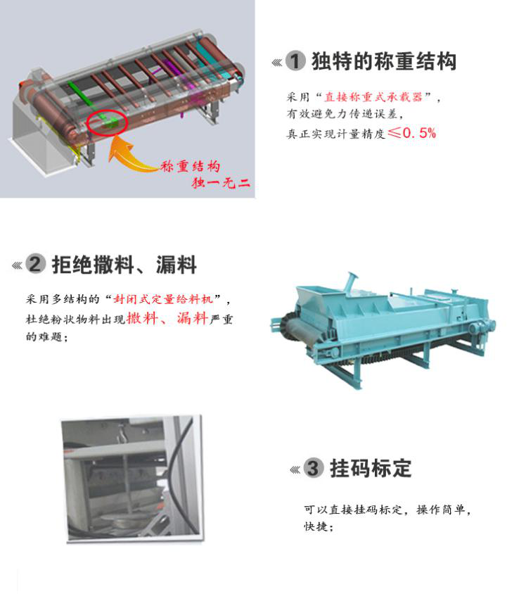 封闭式定量给料机主要由秤架、整体防尘外壳、输送裙边皮带、减速机、电机、传感器、编码器,纠偏装置内外清扫器和相关的称重仪表所构成。