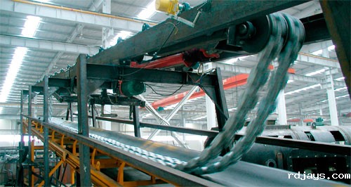 工作方式 被收放的链码条布置在皮带秤上方,链码条不动,类圆形码块在