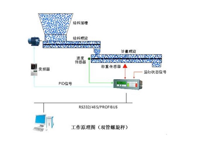 双管螺旋称重给料机是一款适宜输送粉状、颗粒状或小块物料的动态计量衡器,两层结构,上层结构主要负责稳流和输送,下层则主要负责动态计量,稳流效果较好而且节省空间。