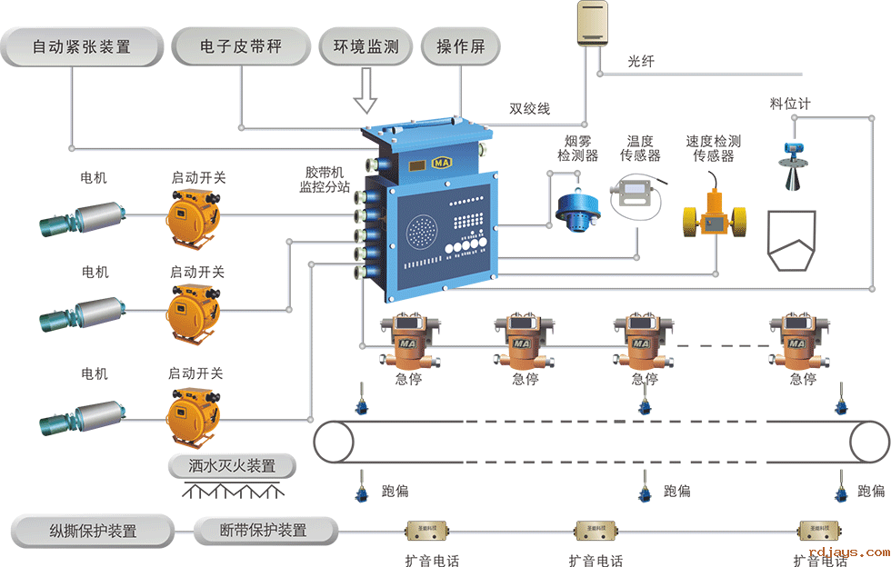 高产、优质、安全、节能、省力,减少岗位人员,最终达到降低成本,提高劳动生产率以获取最大利润是今后煤炭企业在竞争中生存的基础,煤矿要发展、要生存,必须走高产、高效、实现矿井自动化之路,通过自动化建设实现减员增效、降低成本,提高劳动生产率,而皮带集控及保护系统的自动化控制是煤矿自动化的主要部分。